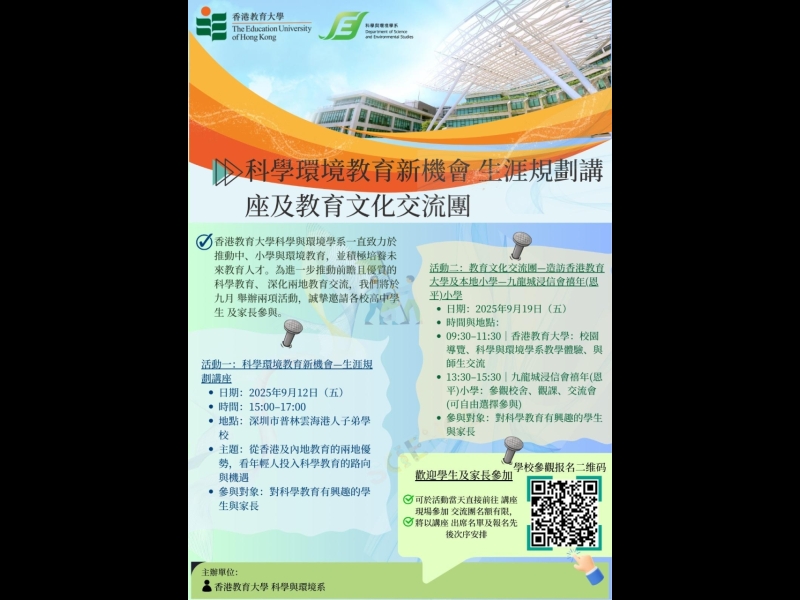 15/09/2025科學環境教育新機會 生涯規劃講座及教育文化交流團