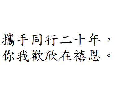 禧恩小學二十載 天天笑聲多歡暢 同你結伴成就美 滿心歡喜 齊共我sing