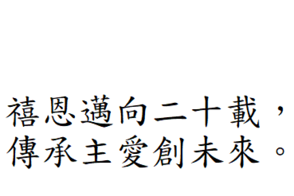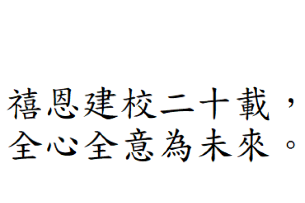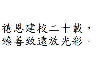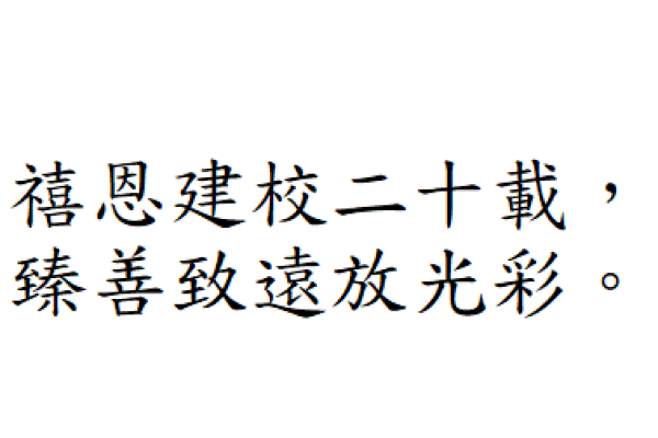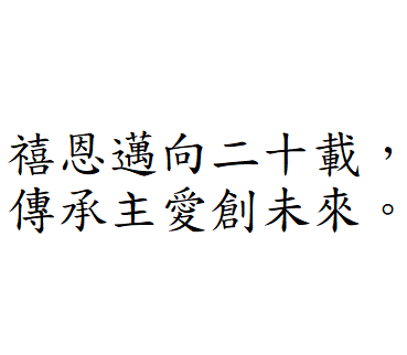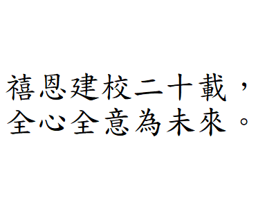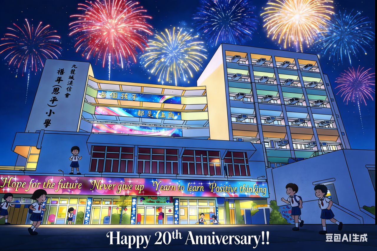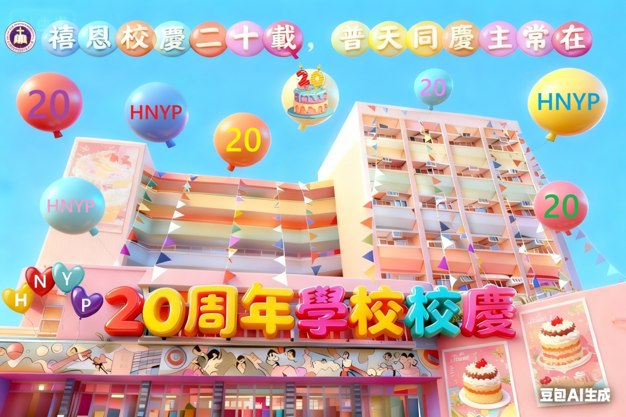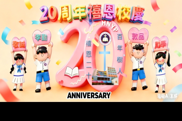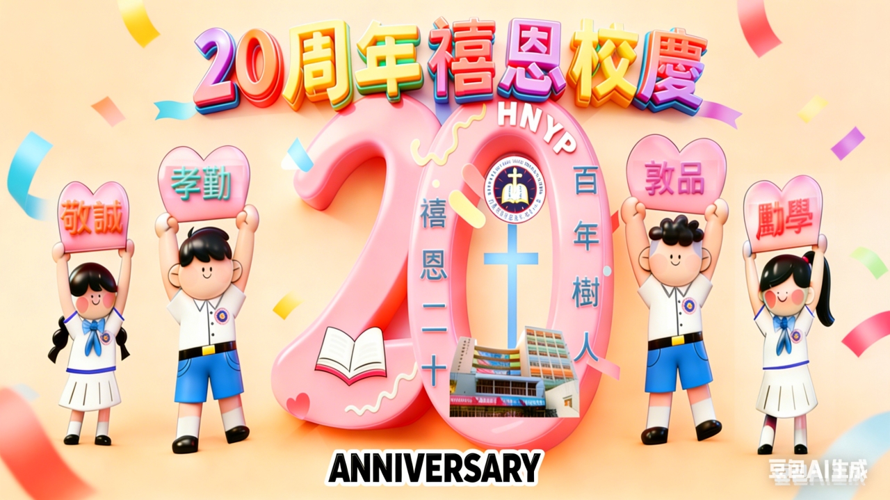 禧恩小學二十載 天天笑聲多歡暢 上帝教導隨心載 叫你我展翅 暢遊星海