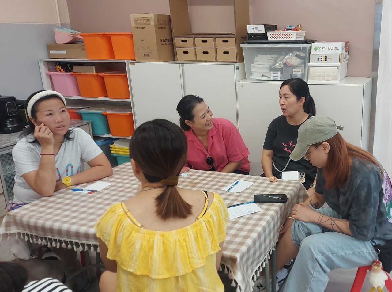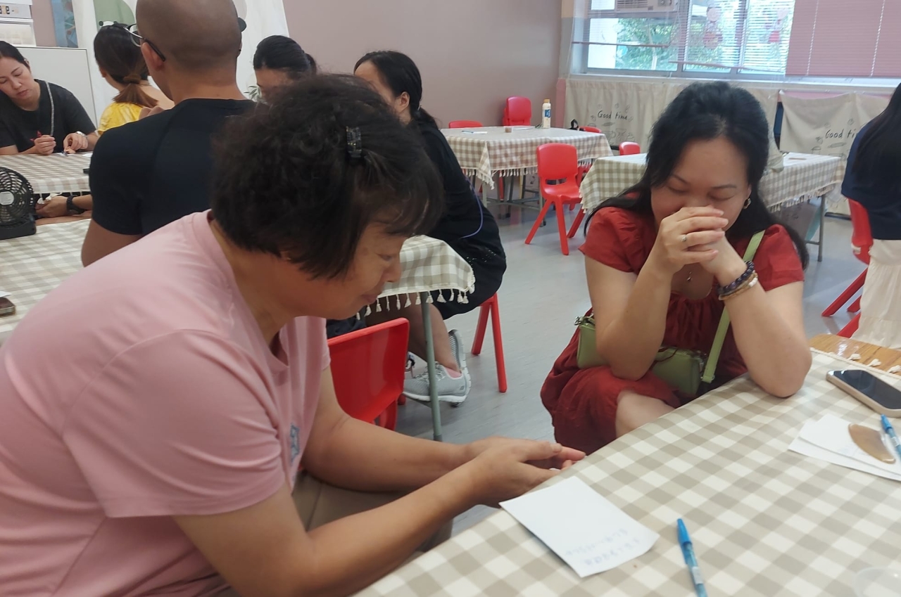 期待已久的「哈拿家庭小組」(第十四期)於3/10(五)開始了,本期的主題為「Find my---找回我的---照顧者自我尋索」。第一炮的題目是「找回我的頭腦」,在導師的引導下,家長們一邊吃着琥珀合桃(補補腦),一邊思考各自的煩惱和重擔。其後,大家各抒己見,氣氛熱鬧。接着,在導師悠揚的結他聲中,大家拿着刮沙板,為自己的頭部按摩,學習在安靜中把重擔卸給創造萬物之主,並為彼此的煩憂禱告,經歷同心同行帶來的溫暖和力量。