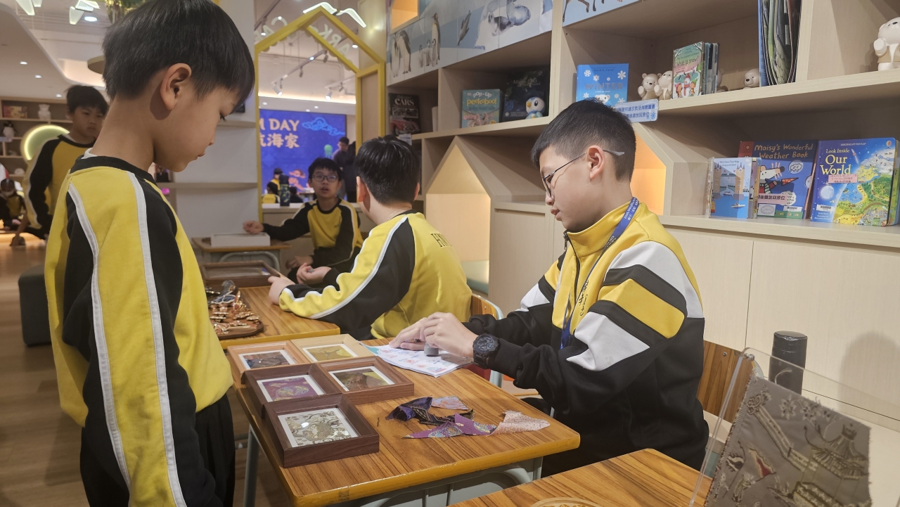 AI 科技引領未來探索 ,科技與藝術體驗同樣精彩,學生親自操作 AI 遙控車、體驗 VR 節奏大師及參與足球機器人比賽,感受前沿科技的樂趣。各級同學亦投入專屬工作坊:學校特別引入多項非物質文化遺產(非遺)螺鈿飾品、琺瑯工藝及宋錦珍珠畫。更讓學生在動手實踐中,深刻體會傳統匠心與工藝之美,實現科技與人文教育的完美結合。