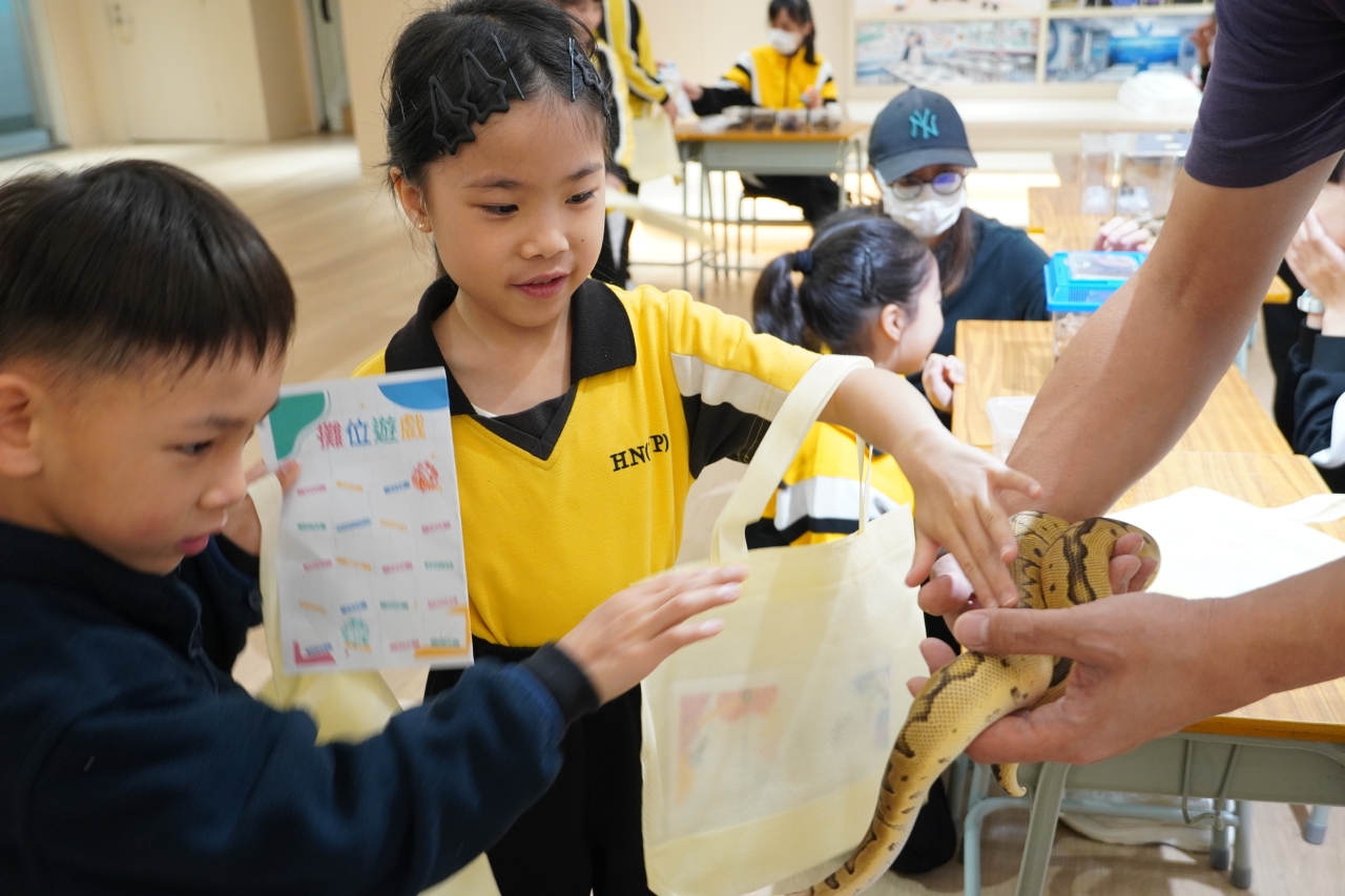 配合「深海」主題,生態保育區的「海地奇兵」大受歡迎,同學透過親手觸摸海星、海參及海葵,近距離探索海洋生物的奧秘。此外,校園內更設有奇珍異獸及兩棲類觀察區,讓學生與球蟒、守宮及蝾螈接觸,實踐生態保育意識。